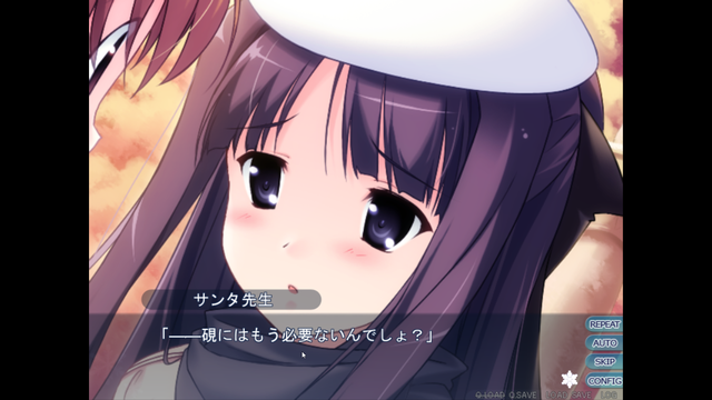 ヒロイン枠で唯一の一般人。サンタではないので個別√は他の√とは違い別の切り口でシナリオが展開していくのは良かったんだけど、話があっちこっちにそれたりしていて読後は最後にやれば良かったなぁと思ってしまった。